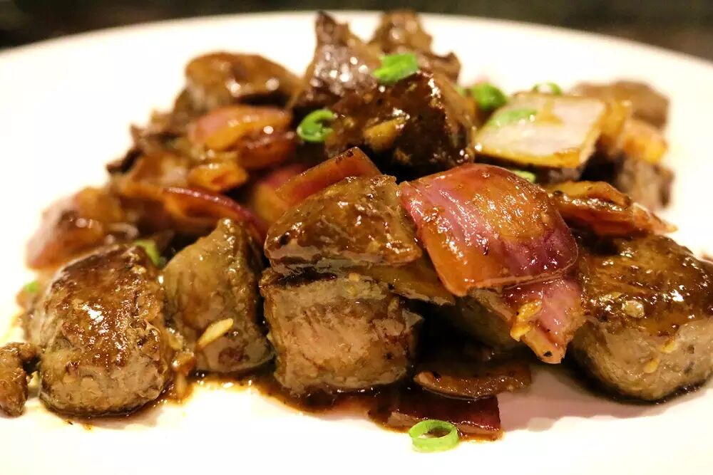 黑椒掌中宝 ,略带些油脂的掌中宝真的是铁板上最棒的食材,油脂经过高温迅速凝结,口感丰腴之余还不腻口;