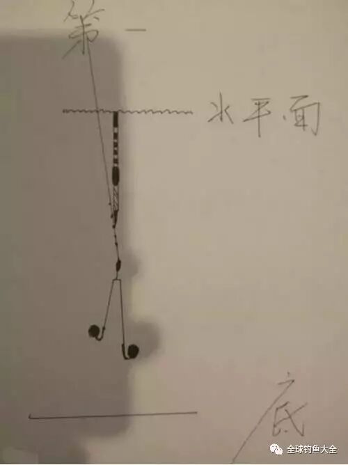 第一步,半水挂单饵,加减铅皮到四目,然后空勾看此漂,此一个单饵需要下沉几目,一般是2目至4目左右,比如是4目,那么挂双饵时是平水,底饵的重量刚好触底到底饵重量全部触底时,浮漂上调的距离和漂目露出的长度是一样多的,这个期间,就找好底了。