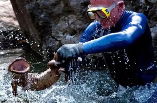 有没有人想把蝾螈这种动物当成宠物养在家中呢?杰里米韦德在日本加茂河与一条巨大的蝾螈进行“搏斗”。这一鱼类酷似蜥蜴,但却明显有着一张美丽的大嘴。![]()
