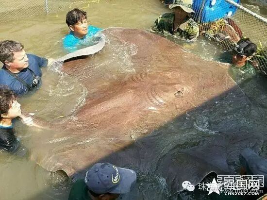 据英国媒体3月12日报道,美国自然环保人士杰夫·考尔文(JeffCorwin)日前在泰国夜功河(MaeKlong)用鱼竿钓到一条巨大黄貂鱼,其宽超过2.4米、长4.3米,重达363公斤,可能是仅凭鱼竿捕获的最大淡水鱼。