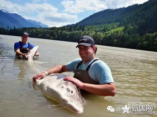 近日,来自美国亚特兰大的男子,19岁的PaulJarvis与父亲Ron来到弗雷泽河捕鱼,在与一条900磅(约为800斤)的白鲟鱼奋战数小时后,终于将其制服。