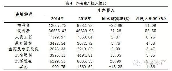 (4)养殖生产投入同比略增,苗种费和其他费用相对减少。