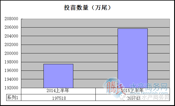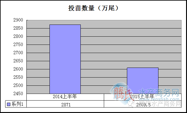图1:2014上半年-2015上半年罗非鱼投苗数量对比图