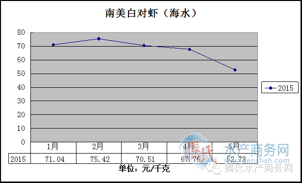 这是因为随着全国性消费认知程度的增加,该虾内需市场仍然会缓慢增加,同时因为东南亚、南美洲等地的该虾养殖生产要素具有一定的成本优势,将让该虾加工出口前景不甚明朗。在内需市场稳健推动下,随着早造虾的上市,2015年下半年该虾价逐步走稳的可能性比较大。