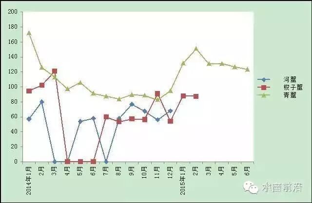 图5 主要蟹类出塘价格走势图(单位:元/千克)