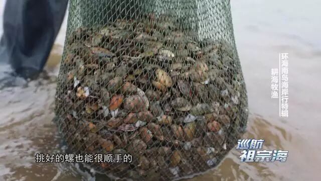 这里的居民们主要用一种叫做螺耙的工具打捞海螺。螺耙可以在浅水区和深水区使用,这件工具可以避免因双手长时间泡在水里而被误伤的危险。用螺耙捞螺虽然看上去相对简单,但是每一耙的深浅都要恰到好处,才能有不菲的收获。