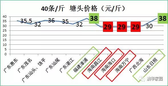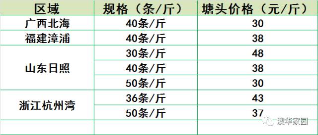 最高出塘价格:福建漳浦、山东日照38元/斤