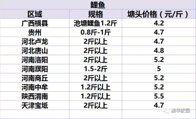 价格播报品种:白鲢、花鲢、鳊鱼、草鱼、斑点叉尾鮰、黄颡鱼、黄鳝、鲫鱼、甲鱼、鲤鱼、石斑鱼、南美白对虾、罗非鱼和其他品种