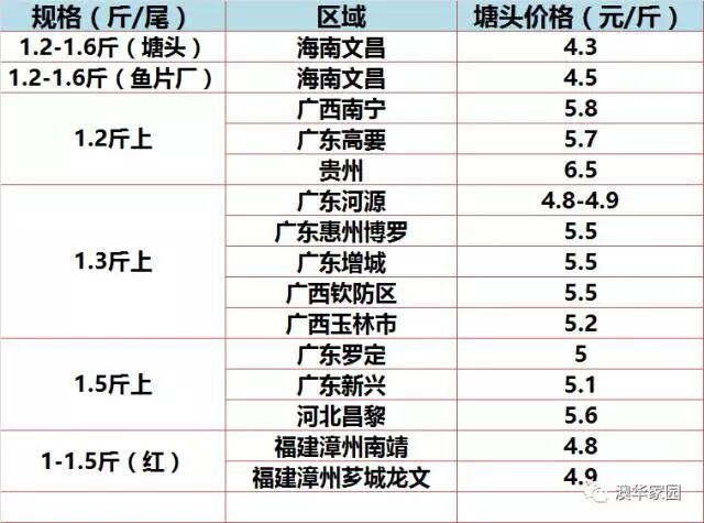 此价格为2017年3月30日左右收集的塘口价【仅供参考】