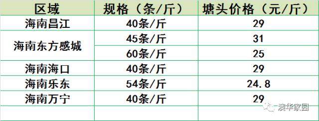 最低出塘价格:海南昌江、海口、万宁29元/斤