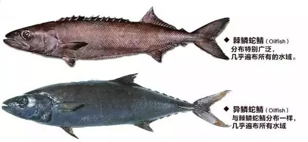 目前市场上,经常用来冒充银鳕的“油鱼”,是两种叫做蛇鲭的鱼——异鳞蛇鲭和棘鳞蛇鲭,属于鲈形目。与之前的鱼类不同,它们是喜欢生活在热带和温带海洋的深水鱼,分布特别广泛。油鱼因含油量高,有时会被冒充银鳕,但更多时候是被奸商拿去冒充金枪鱼,被称“白金枪鱼”。