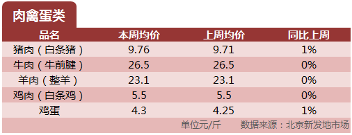 据监测显示,本周(2017年11月13日—11月19日),重点监测的5种肉禽蛋类均价为13.83元/斤;上周均价为13.81元/斤,与上周相比基本持平