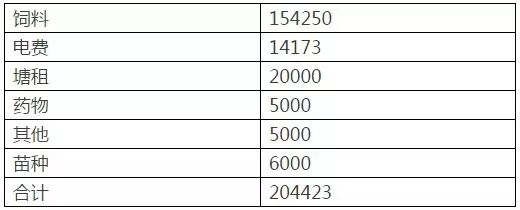 总投入:苗种6000元,饲料成本塘鲺料:50*125=6250元,黄颡鱼料:925*160=148000元,电费:7477+6696=14173元,药物:5000元,塘租:20000元,其他:5000元,总成本204423元。纯收入:140727元,亩利润28145.4元