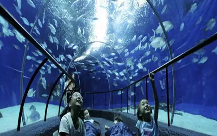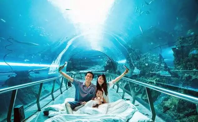 珠海长隆的鲸鲨馆坐拥五个吉尼斯世界纪录,拥有亚洲第一大水族箱。海底互动船是一个模拟海底景观的游览项目,游客搭乘一艘小艇出发,会历经海洋的形成,海底火山爆发,海底生物进化等各个进程,最后抵达真实海底隧道,虚实结合充满迷幻色彩,别说孩子,大人也会很喜欢~