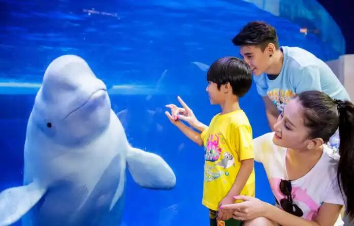 在模拟的极地环境中,冰雪溶洞、爱斯基摩人雪屋等极地景象随处可见,在海兽混养池,游客们可以观赏珍稀的极地动物,并参加到拍照和喂食活动中去,令人充分发挥想象力。