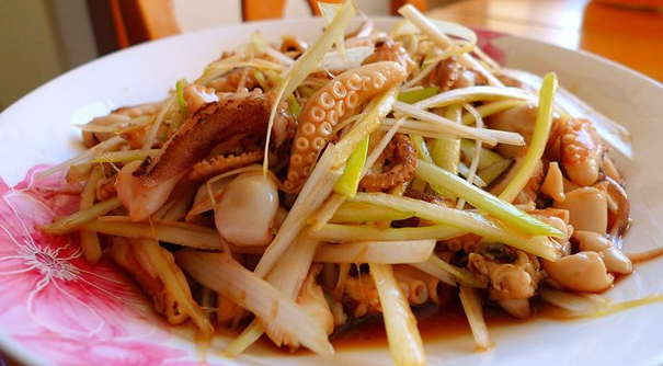 经典做法:将新鲜八鮹去掉内脏和墨袋,用放入姜蒜的水烧至冒泡,放入八鮹焯1分钟捞出,铺上葱丝,浇上用生抽、米醋、盐和味精调成的酱汁一起拌匀即可。
