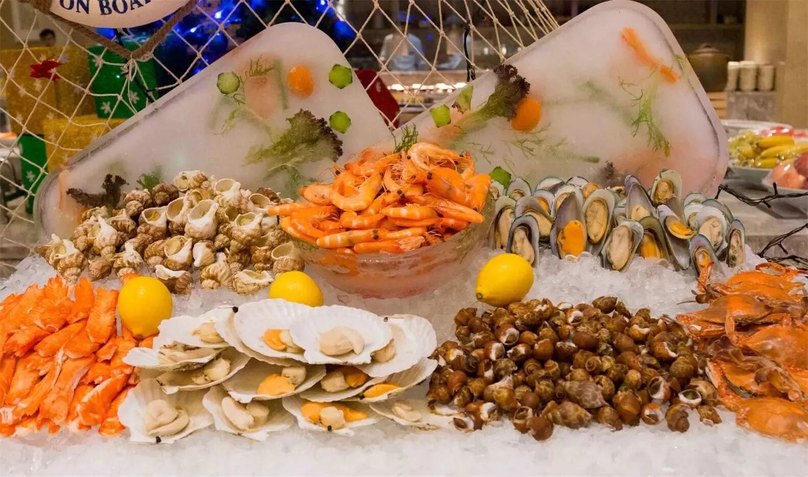 肉质鲜嫩的阿拉斯加蟹腿、老虎蟹、海星、墨鱼仔