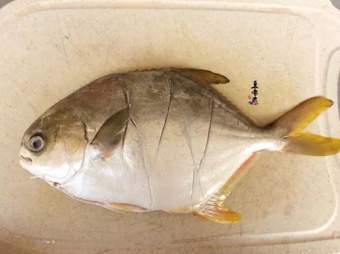 做法:买回来的金鲳鱼处理好,特别的肚子里的内脏及鱼鳃要处理干净。