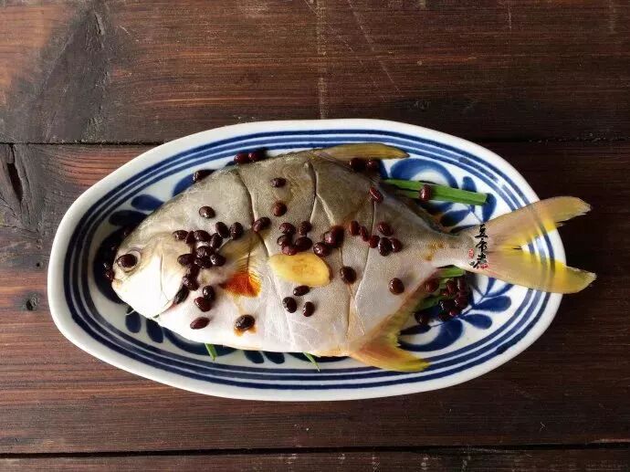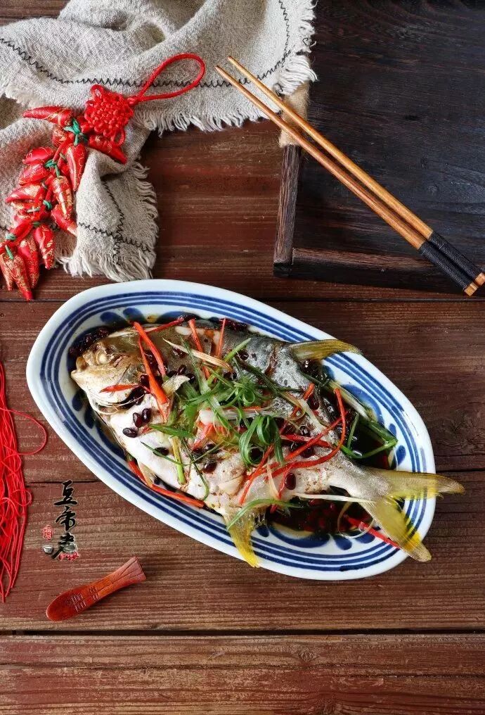 材料:金鲳鱼1只、青葱4根、老姜4片、红辣椒半个、豆豉1匙、豆豉蒸鱼汁2匙