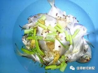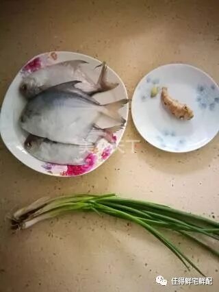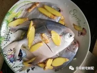 2鲳鱼处理好,在鱼的两面都划刀,生姜切片,葱白洗净去头