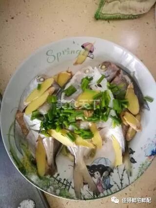 5水烧开,放入鲳鱼,大火蒸5分钟,时间按鱼的大小决定,出锅倒掉鱼里面的汤汁,撒上葱花