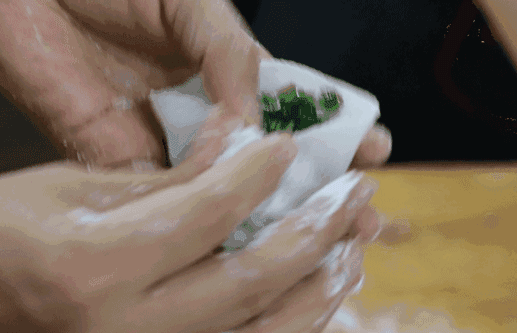 粿中馅料为鲜嫩可口的韭菜,蘸上特制的辣椒酱,你猜会不会好吃得连舌头都能吞进肚子里呢?