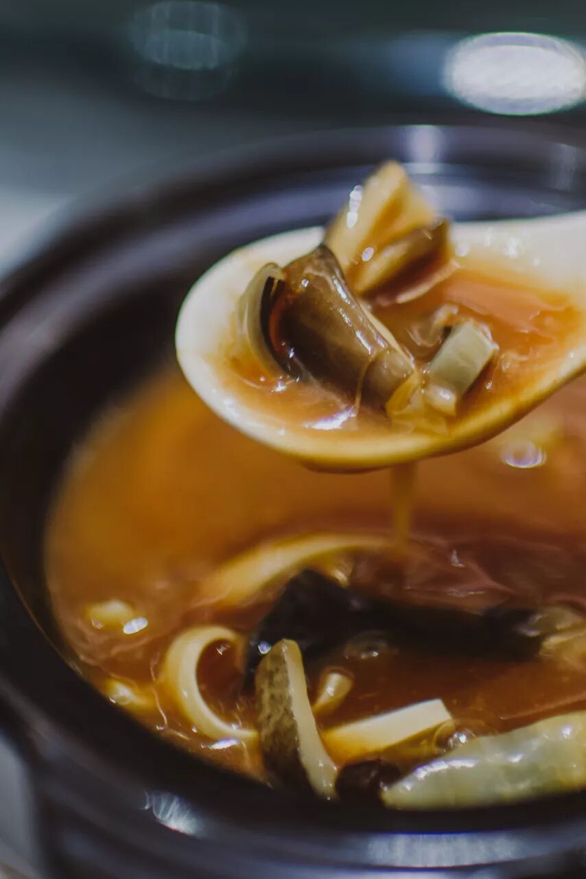 鲨鱼皮经过厨师的巧手烹饪,非但没有一点腥味,还十分地惹味香浓。加上每一块鲨鱼皮都软糯胶口,光喝一勺就感觉可以媲美一口气喝了十瓶胶原蛋白的效果,大家如果碰巧看到了,一定要尝尝看!墙裂推荐!小e诚不骗你!
