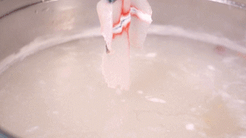 把生鱼片拌入其中,爽滑鲜美,满口溢香,