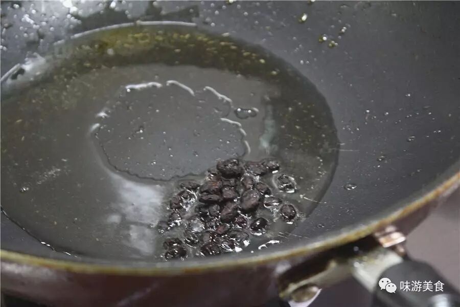 注:豆豉是干的,在油温很低的时候就可以下豆豉入锅,让油发一下