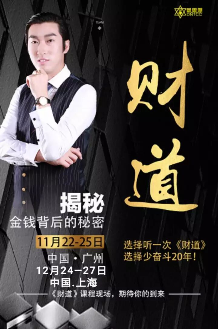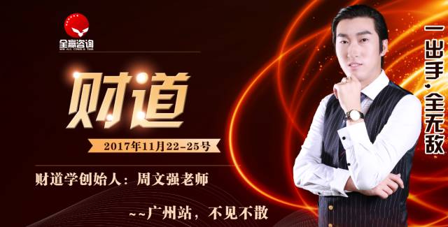 | 报名参加学习需知 时间:2017年11月22-25日(4天3夜)广州 主题:《财道》 (限老板、负责人、创业者,股东带高层参加) 投资金额:19800元/人 限时优惠价:1000元/人 报名建议指南: 报1个:10人以下的企业 报3个:10-50人的企业 报5人:50-300人的企业 报10人:500人以上的企业