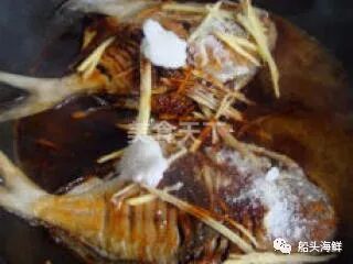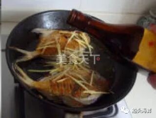 6.两面煎透,下姜丝。花雕酒(比平时略多一点)