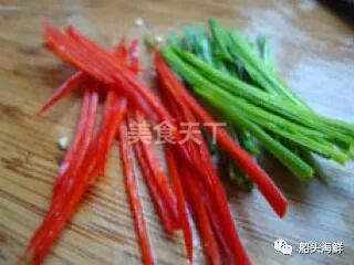 11.大蒜红椒切丝。