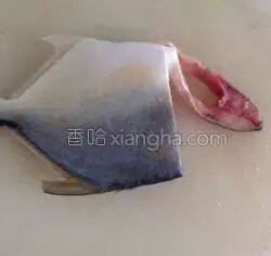3.切的时候注意薄厚均匀,全部切完后,用盐和料酒把鱼身涂抹均匀