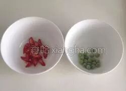 7.腌制好后放蒸锅大火蒸八分钟,关火后焖四分钟,小米椒斜切,豌豆煮熟备用