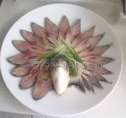 9.蒸好的鱼倒掉多余汤汁,去掉葱段,浇上酱汁