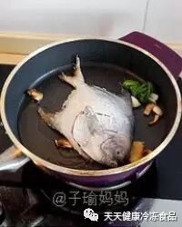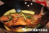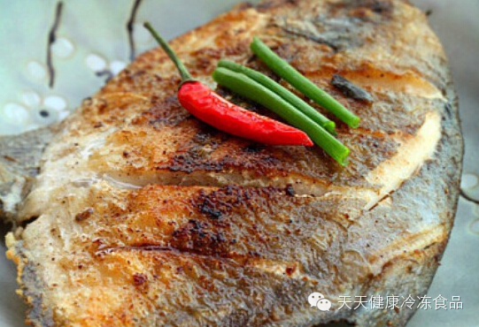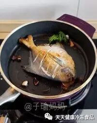 从大火转成小火,下入鲳鱼煎,煎的时候撒上些椒盐