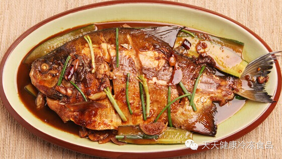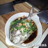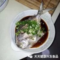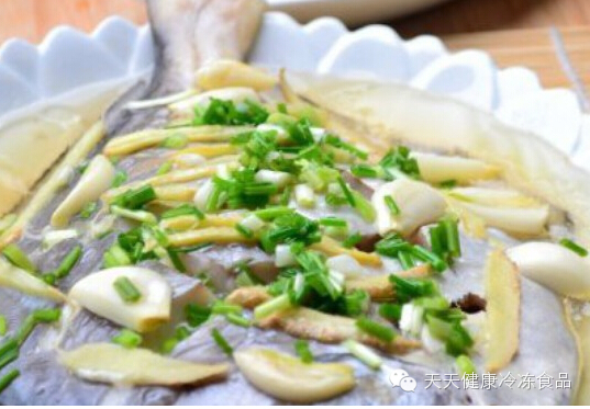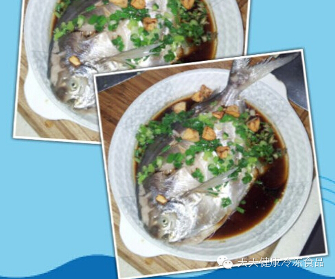 葱切粒洒在鱼背上,另起锅烧热油,浇在葱花上即可,味道鲜美原汁原叶的大鲳鱼就好了