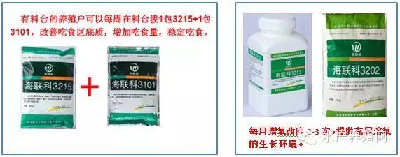 ①存塘量2000斤/亩,增氧机配置至少0.75kw/亩,中午多开增氧机;投喂前半个小时打开料台附近增氧机;