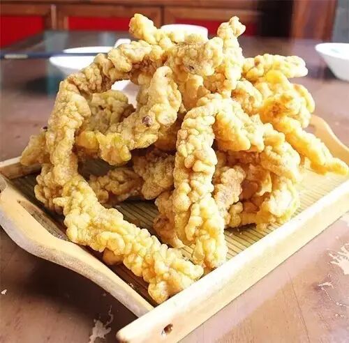 色泽金黄,酥脆爽口,咸鲜微麻。
