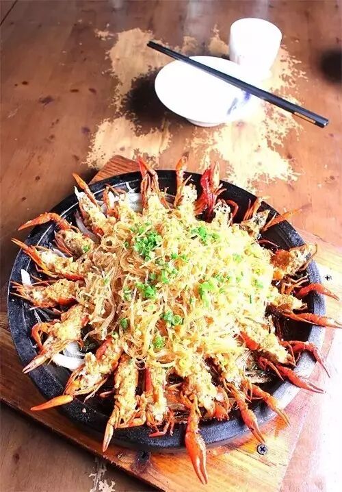 小龙虾500克,水发粉丝300克,蒜粒50克,炸蒜粒50克,葱花50克。