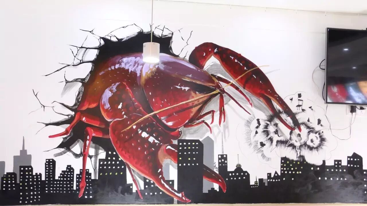 好大一只虾,3D的效果,真有一种破墙而出的感觉