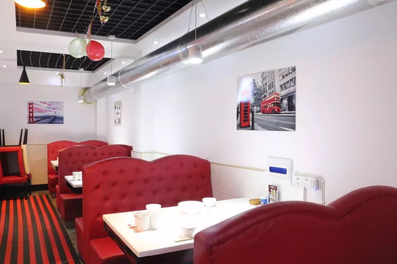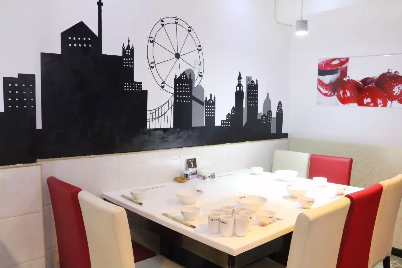红、黑、白——三种简洁的颜色,凸显出整个餐厅的大气