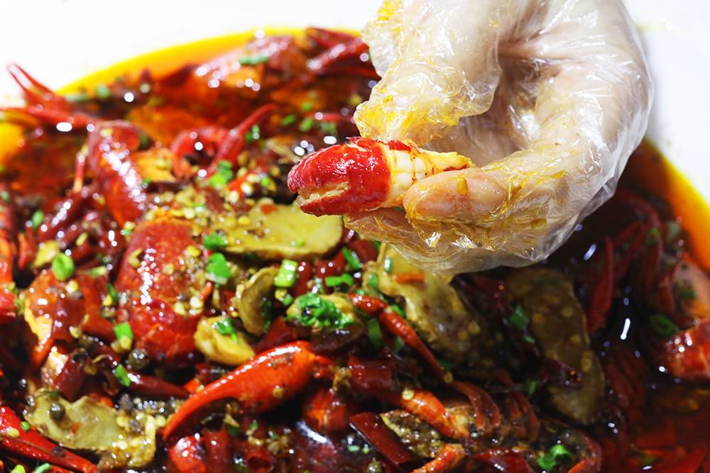 可能是因为老板是退伍军人,做事很严格,这里的每只龙虾都要员工带着手套一只一只的用刷子刷,认真的清洗!