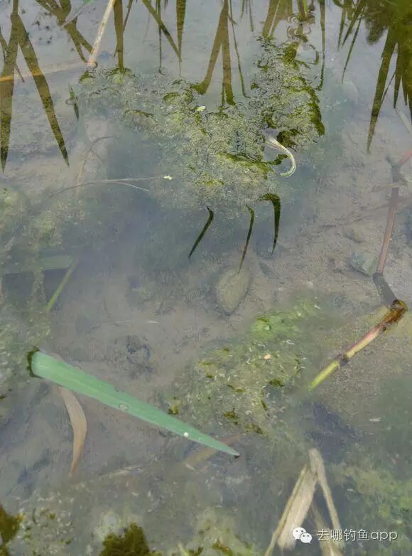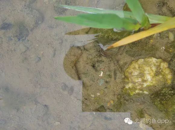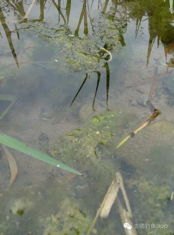 仔细看, 水草下面,一条条黑纹的石斑鱼苗,三条竖线水草影子的第一条影子那里,仔细看,黑纹的鱼苗。