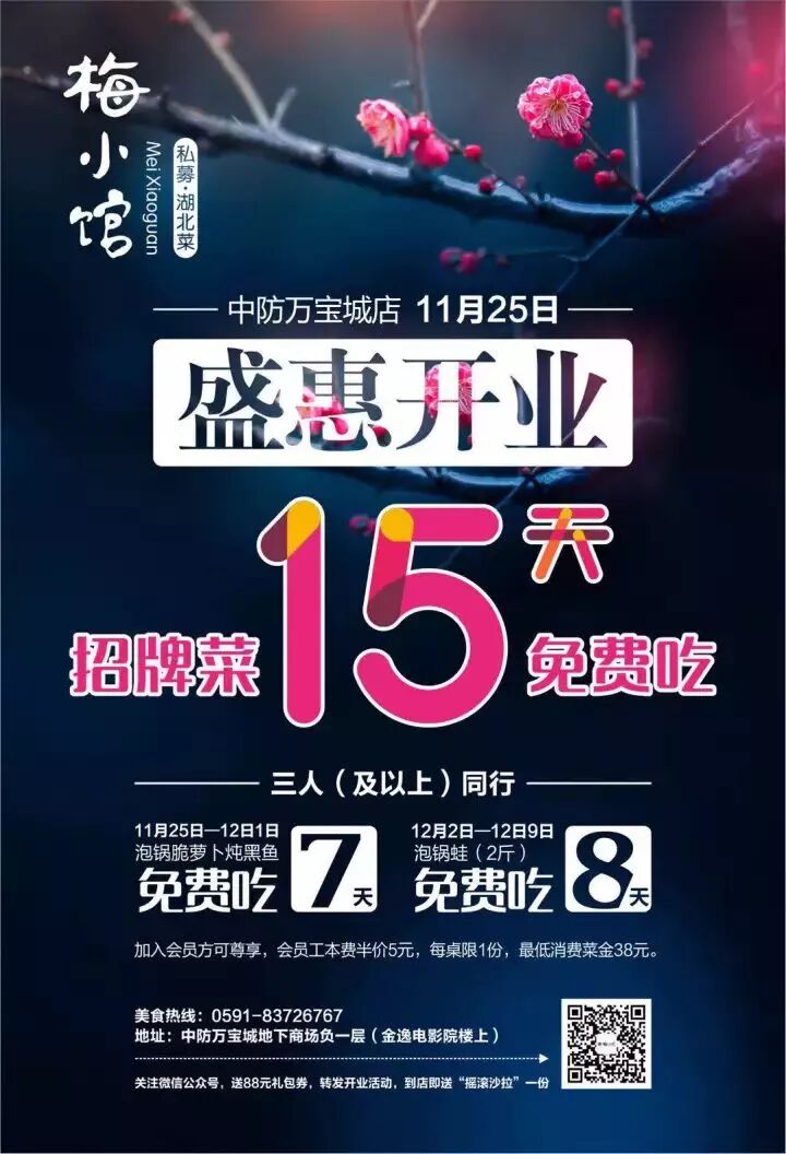 而今天,小编要给大家分享的,就是这样一家私房菜馆。它打破传统湖北菜的印象,颠覆以往湖北菜的体验,它是一家私募湖北菜,是私房菜和湖北菜结合的典范。TA将于11月25日惊艳亮相福州中防万宝城。它就是——最高格调的湖北菜【梅小馆】
