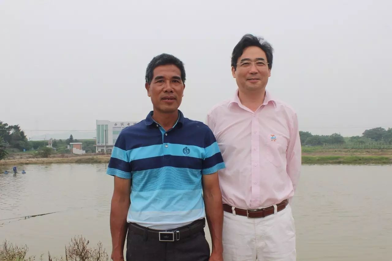 中:周润森 右:佛山市金浦饲料实业有限公司业务经理张冰
