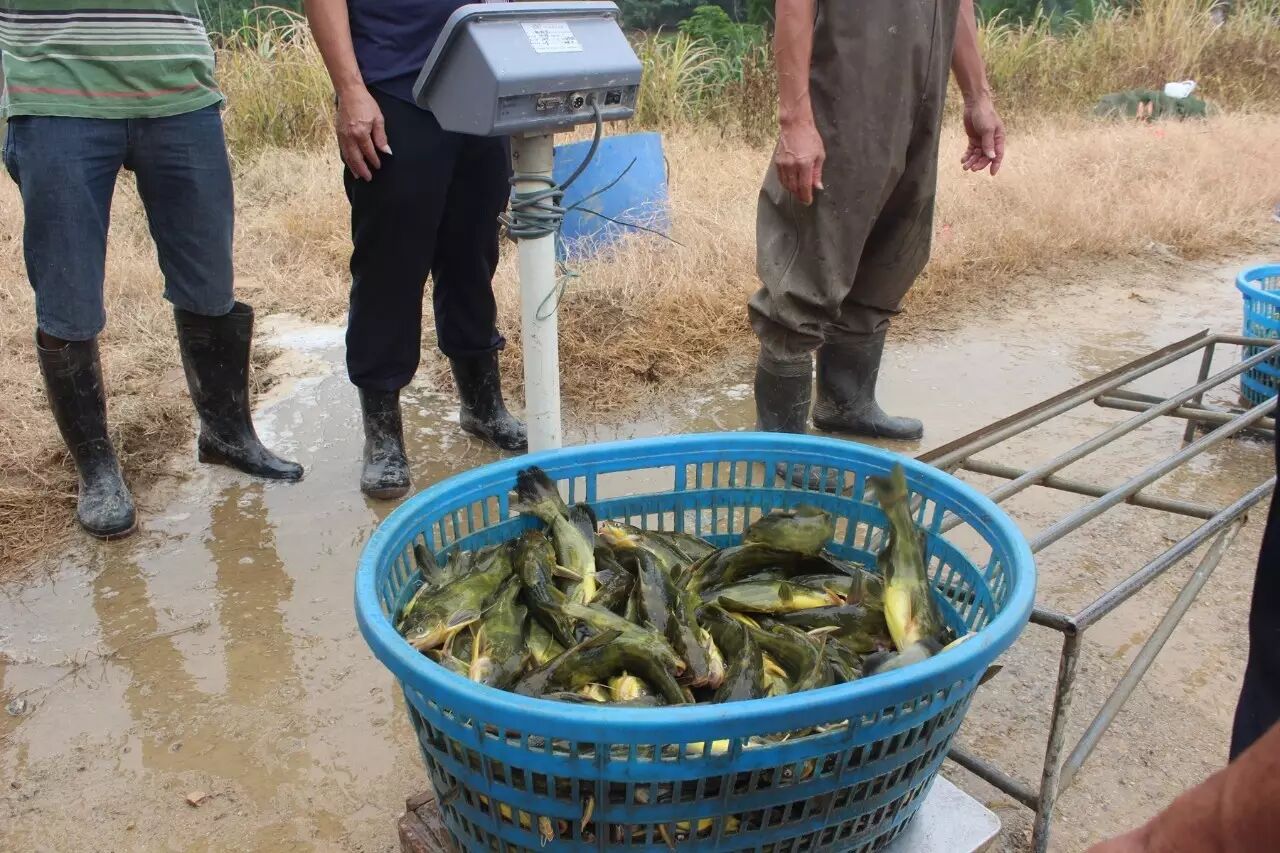 从事黄颡鱼养殖二十余年,周润森一家一直勤劳、诚恳、脚踏实地地扎根水产养殖行业,为佛山三水当地人们津津乐道。据了解,周润森在佛山南海、三水白坭具有接近200多亩的鱼塘,其中接近100亩为黄颡鱼养殖基地,其余为生鱼、牛尾鱼等特种鱼养殖基地。2016年5月13日,周润森一家迎来了丰收的一天,他在佛山三水白坭镇上12亩的两口鱼塘,2015年6月底投了258340尾黄颡鱼苗,次年5月出鱼累计54902万多斤,亩产接近5000斤,平均规格约5两/尾,塘头价11.5元/斤。在黄颡鱼养殖成本普遍在8.5元/斤的情况下,周润森养殖黄颡鱼的饵料系数却只有1.35左右,养殖全过程成本大约是7.5元/斤,亩利润高达2万元/亩。