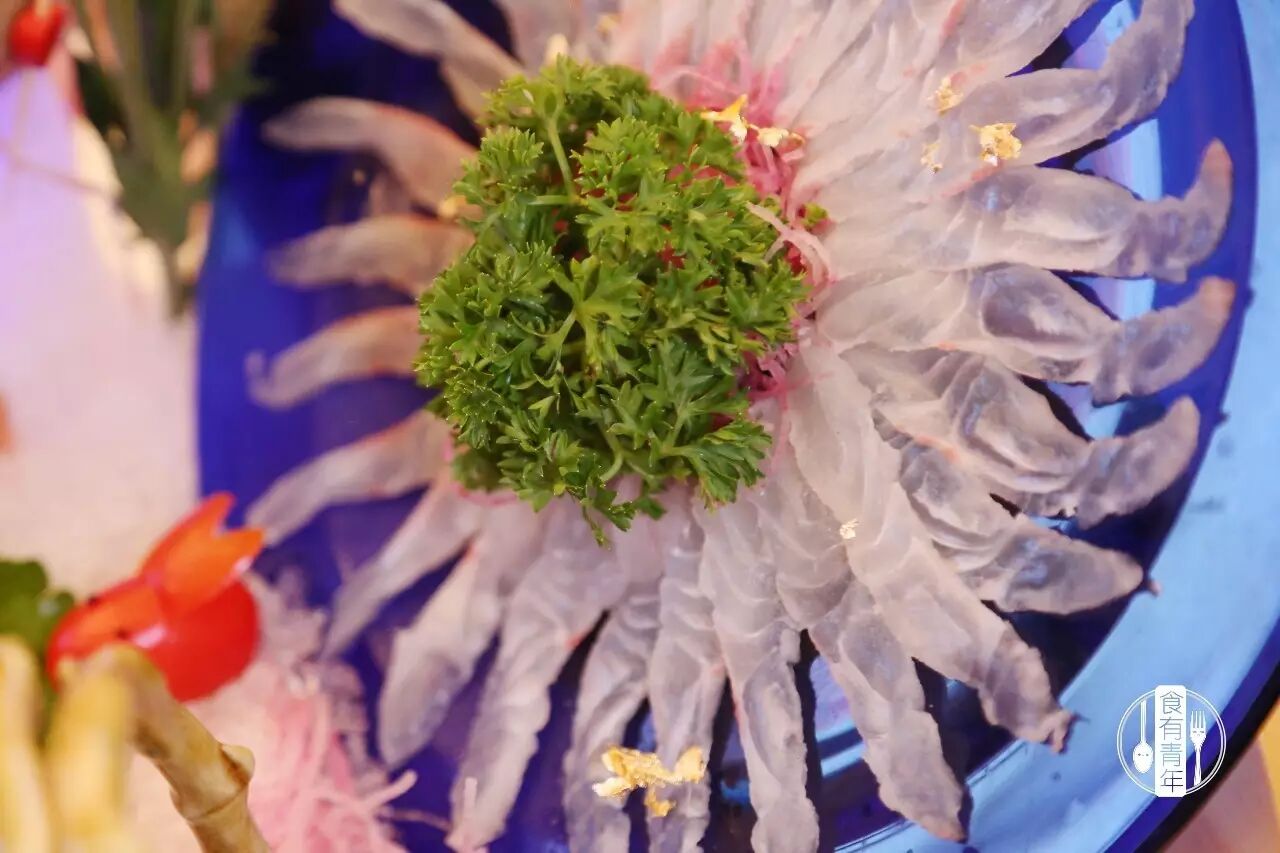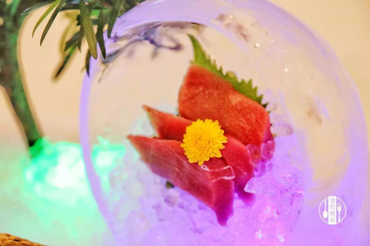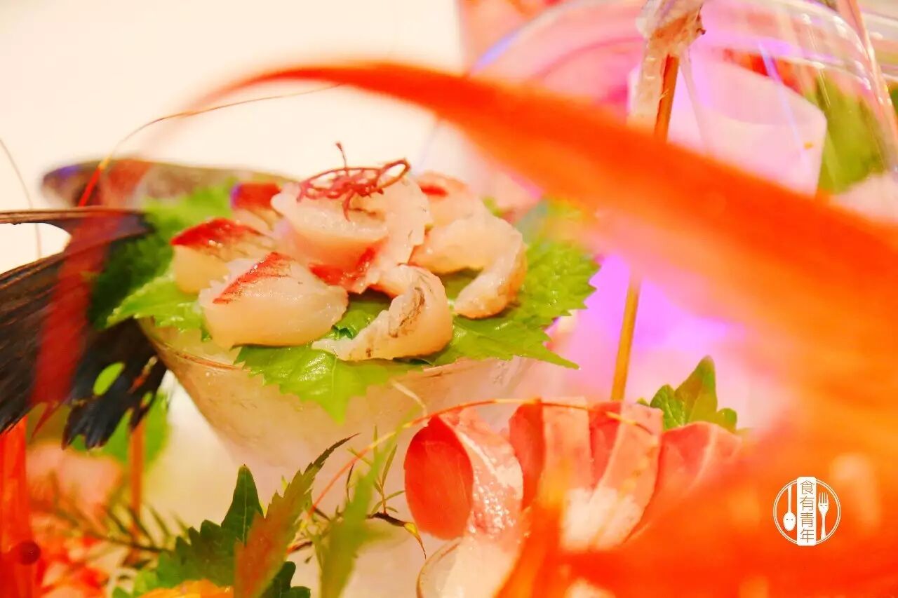鱼刺身肉质色泽鲜亮美丽,充满着食欲,令人垂涎欲滴,仿佛三生三世才能遇到这一杰作,鱼的香气随之便扑面而来。