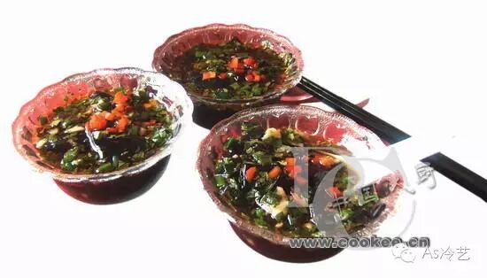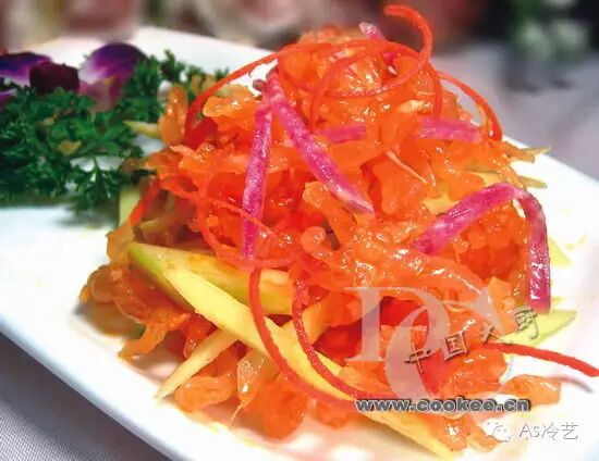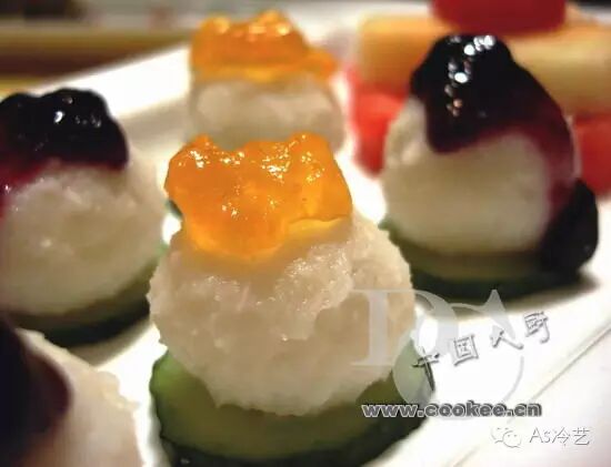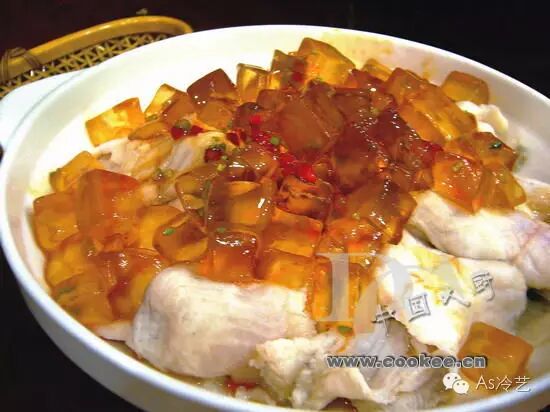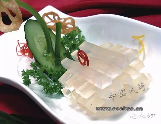 创新点:将猪皮冻加椰浆做成冰凉的冰糕形式,具有清爽、透明、晶莹、滑润、味美等特点,是道低成本高利润的时尚凉菜。