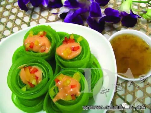 夏天做法:将凉瓜卷用冰红茶浸泡,跟千岛酱、冰花梅酱一起上桌即可。